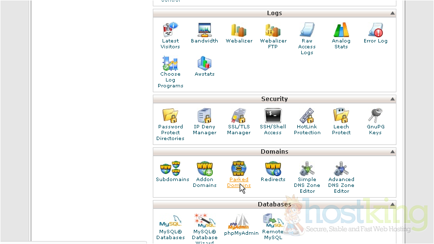 1) Click the Parked Domains icon