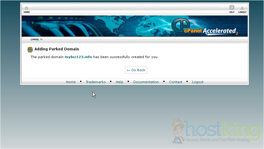 This is the end of the tutorial. You now know how to park another domain name on your account from cPanel