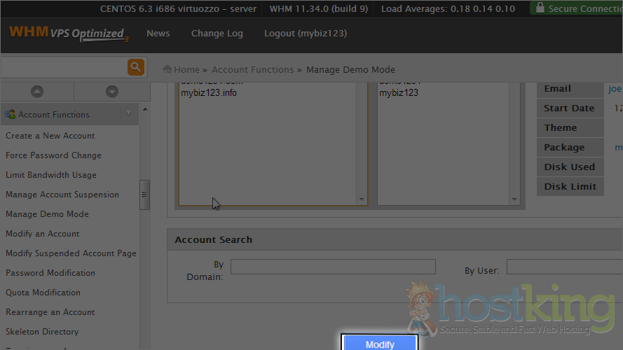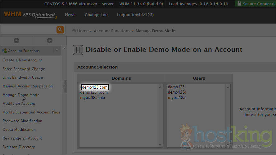 3) Select demo123.com as the account we want to convert into a demo account.