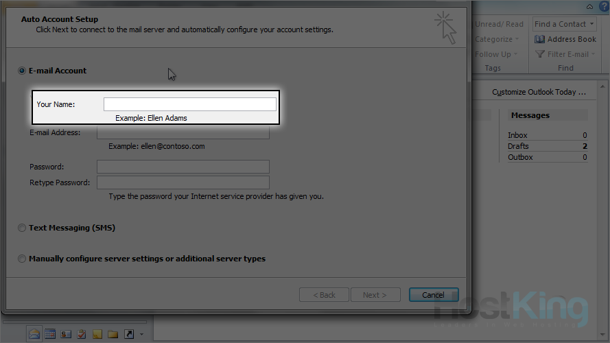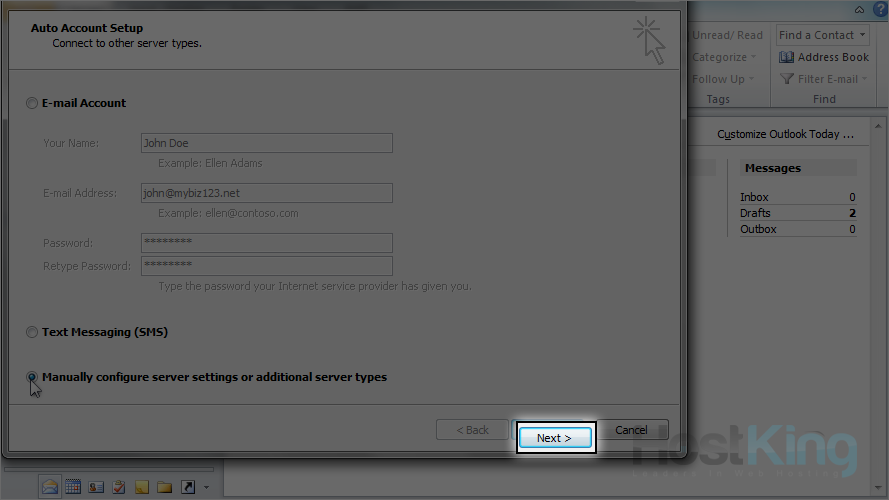 6) Click here to manually configure your mail server settings.
