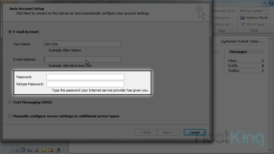 5) Enter and confirm the email account's password.