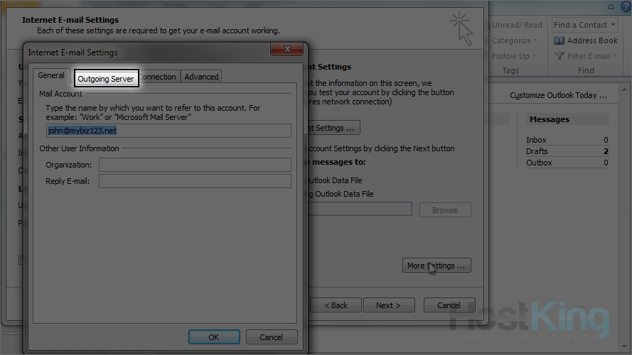 13) Click the "Outgoing Server" tab.