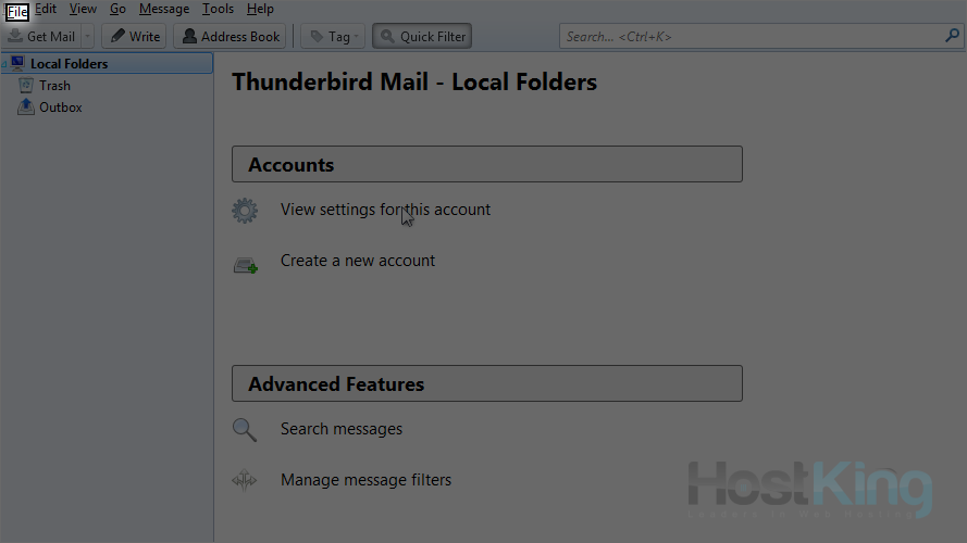 1) Let's learn how to setup a pop email account in ThunderBird. Click the file menu to continue.