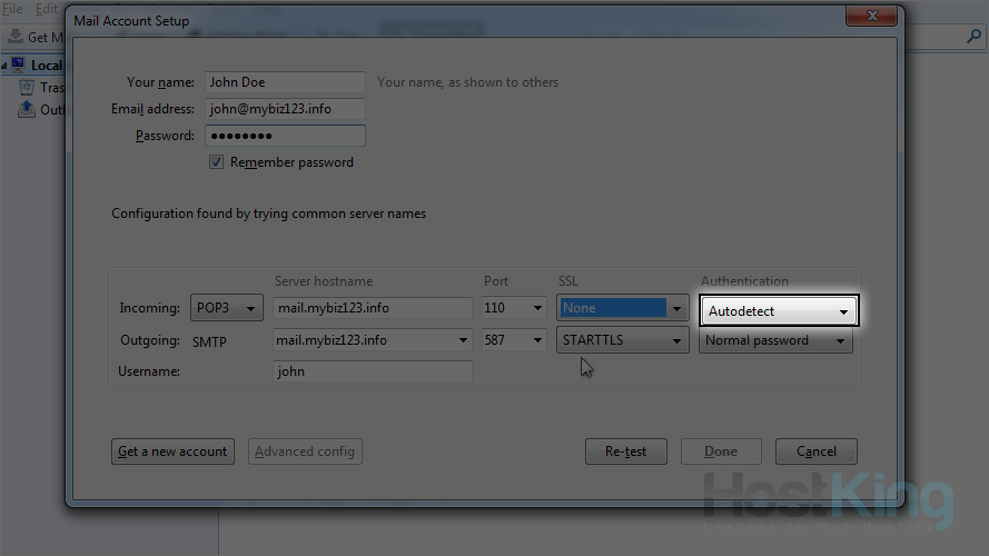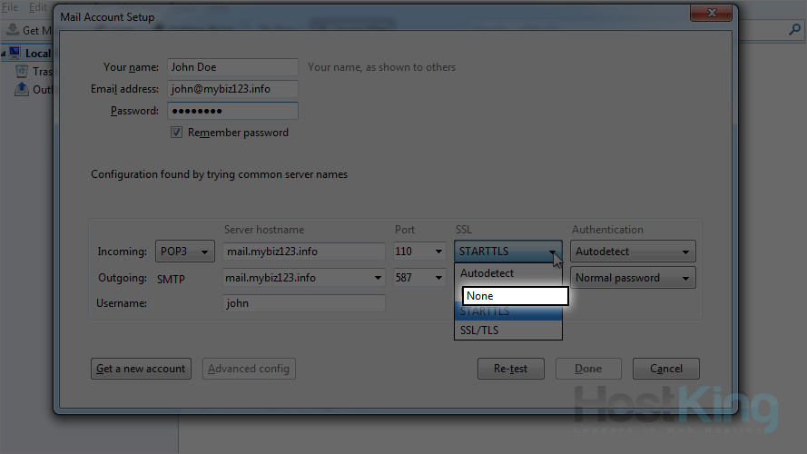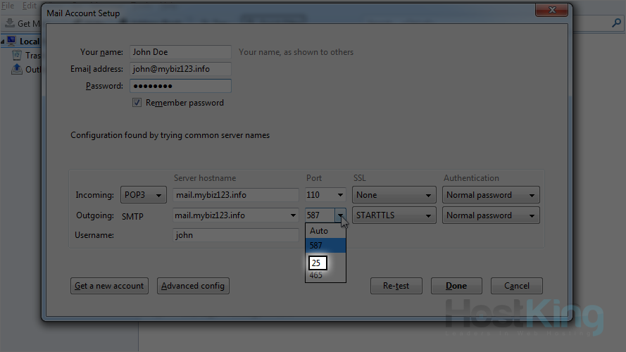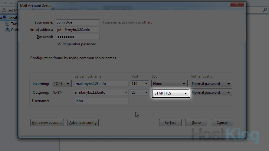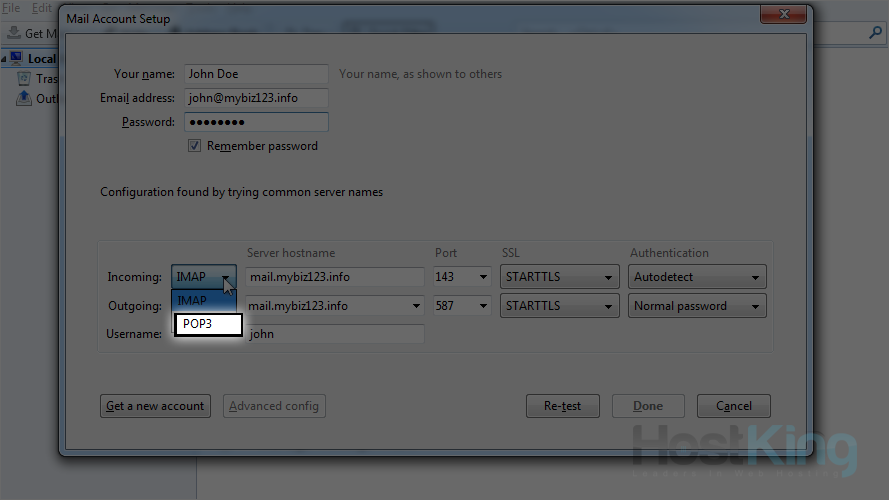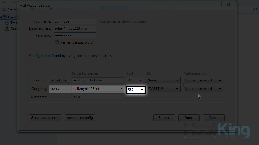 12) Under server hostname make sure it says mail.yourdomain.com or whatever hostname your web host supports.