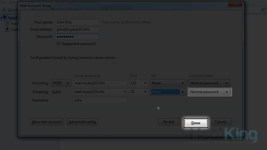 This is the end of the tutorial. Now you know how to configure a pop email account in ThunderBird.