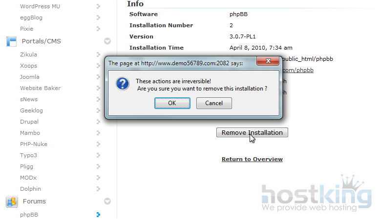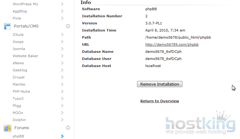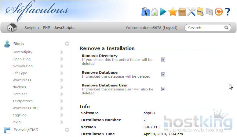This concludes the demonstration. You now know how to remove a script installed in Softaculous.