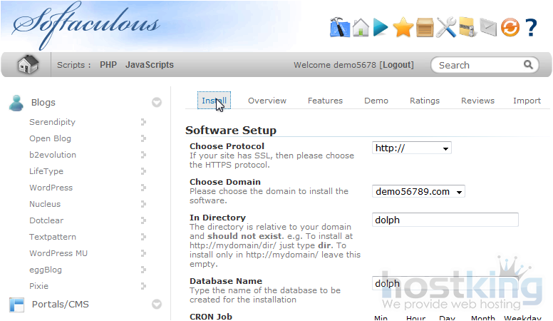 If you have multiple domains on your account, you can choose where to install Dolphin.