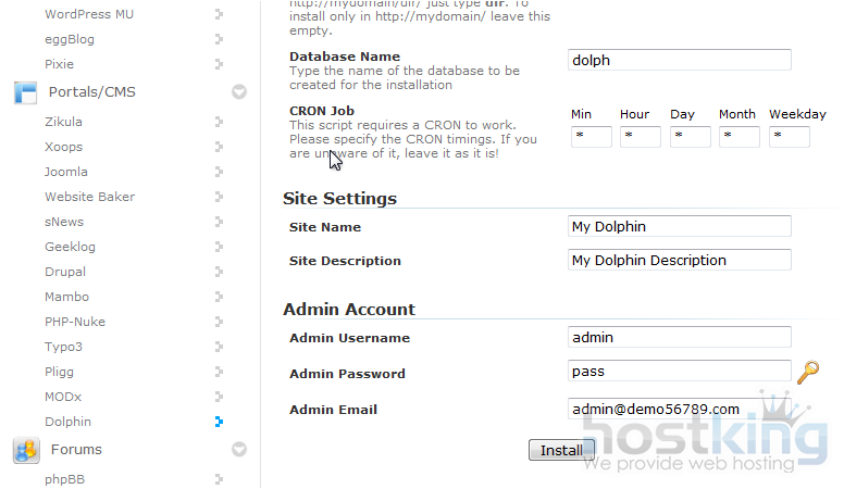 Set the Site Name and Description here. This can be changed later from the software's admin panel.