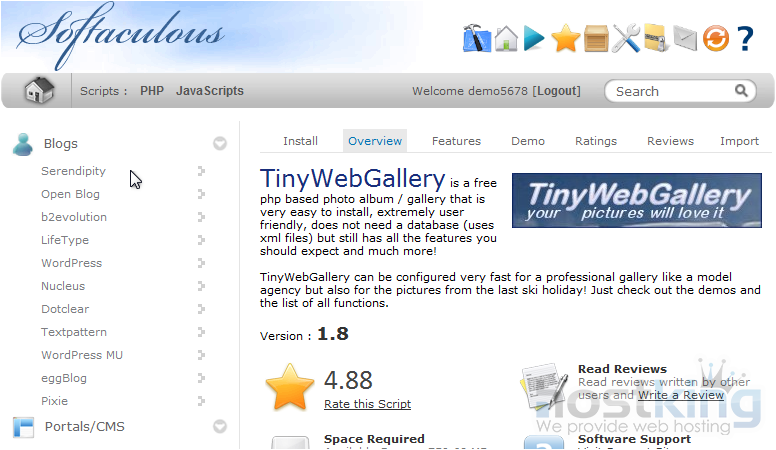 TinyWebGallery is an image gallery. Scroll down until you find it in the menu.