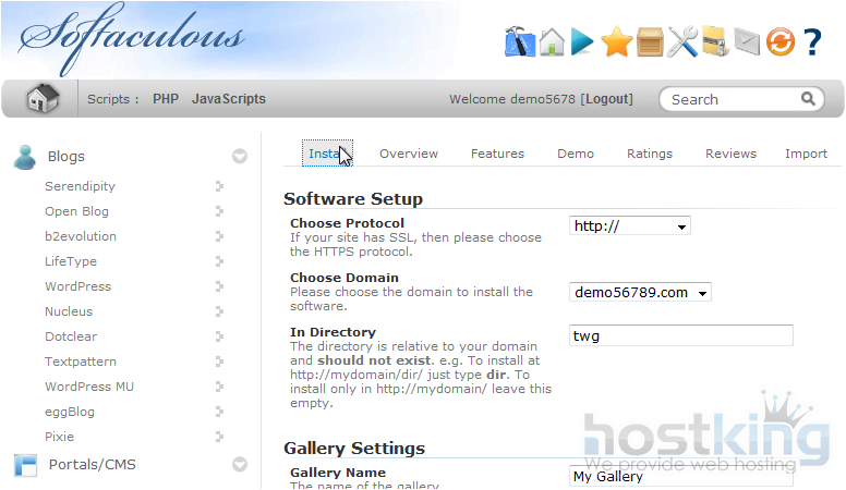 Under Gallery Settings, enter a Gallery Name and Description. These can be changed later on from the application's admin panel.
