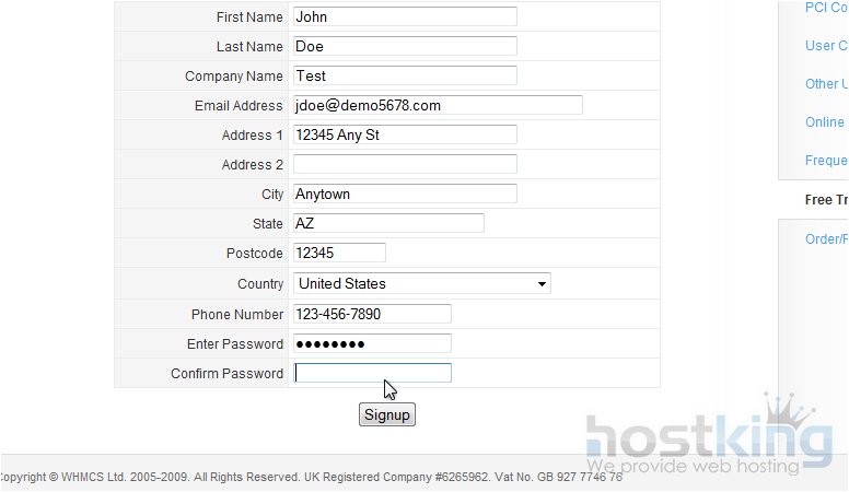 8) Click Signup.