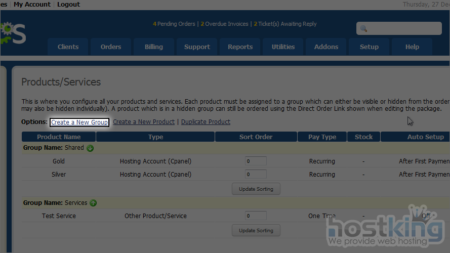 After completing all the previous tutorials, you're finally ready to begin adding your products and services to WHMCS.