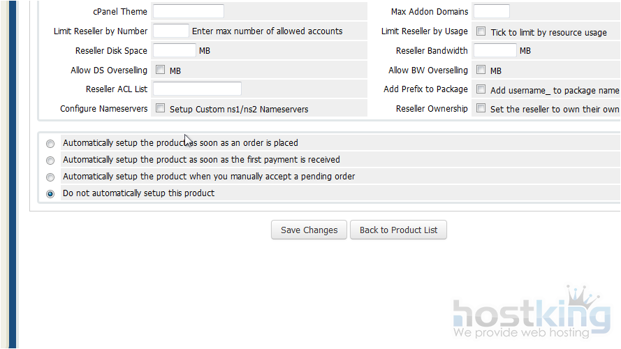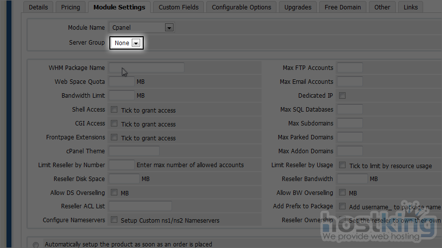 20) Choose the control panel module that this product should use, if any. We'll use cPanel.