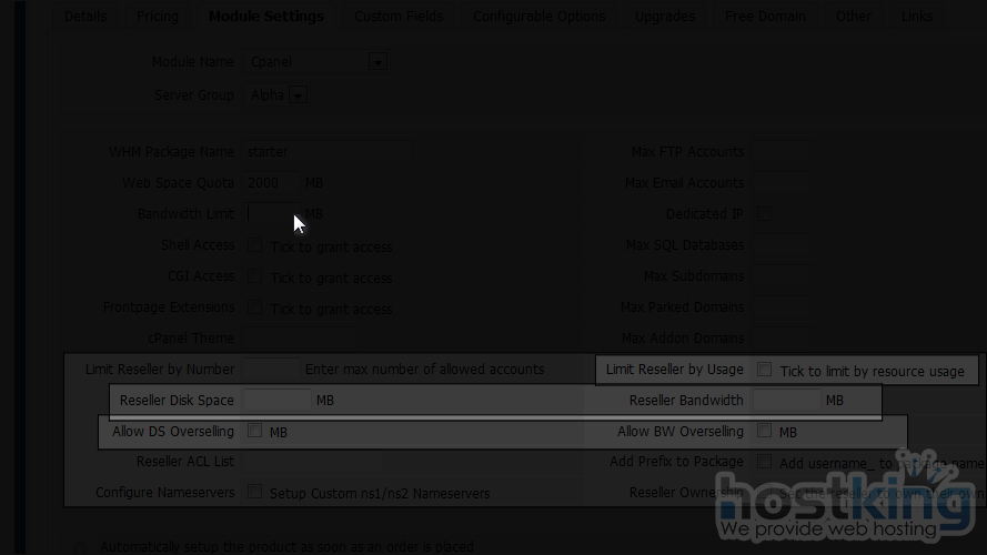 23) These fields are important, Make sure you select limit reseller by usage, so reseller dont use more resources than their quota.