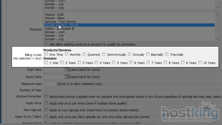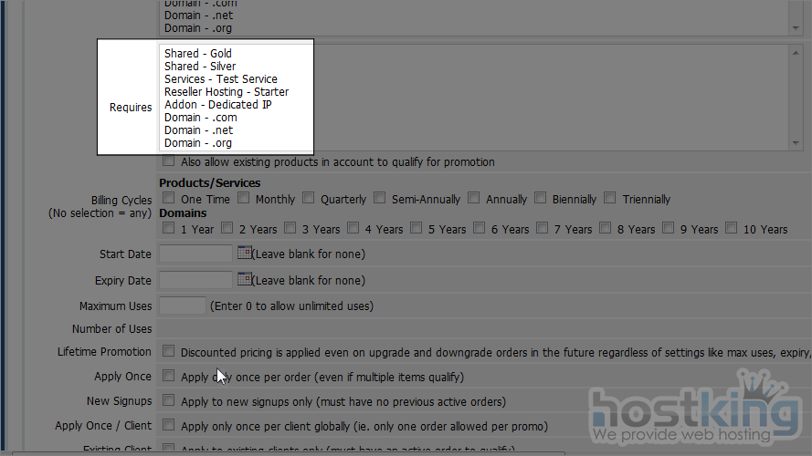 11) WHMCS 5 also allow you to set which item require to qualify for this promotion.