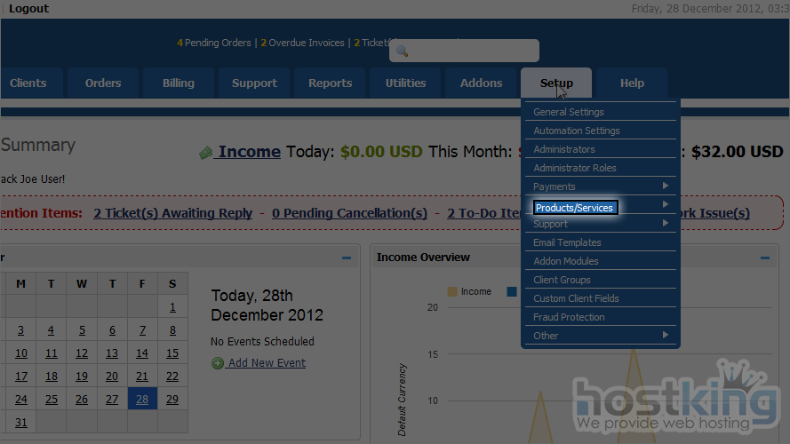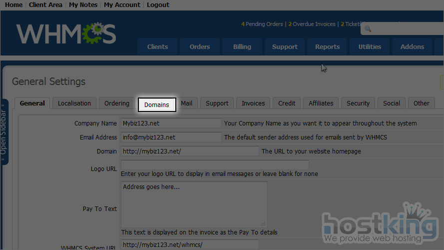 This tutorial assumes you've already logged in to your WHMCS admin panel.
