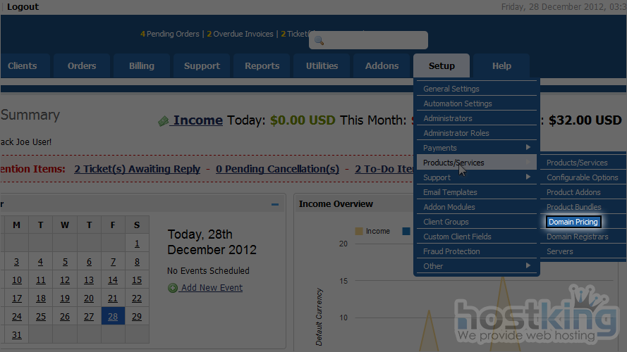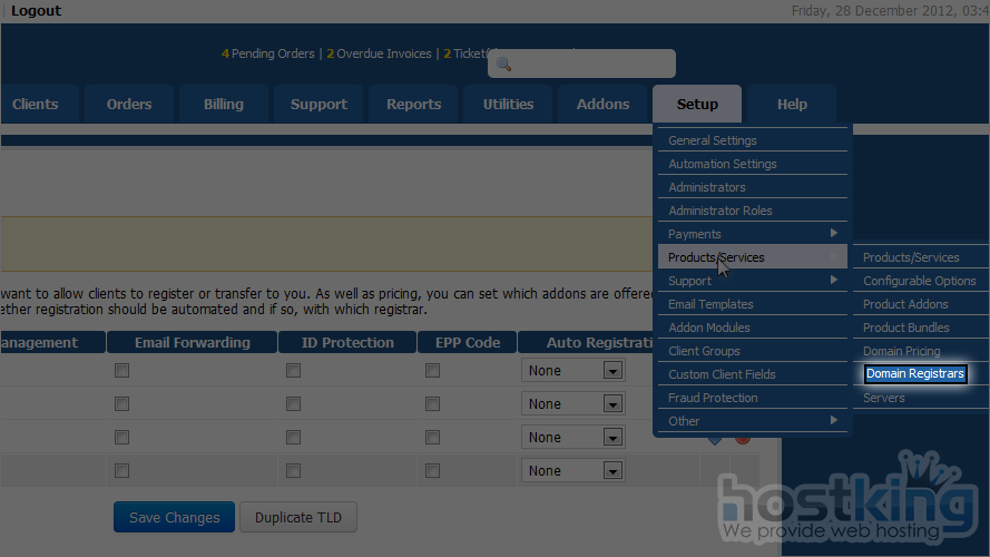 With WHMCS, you can set the prices of each top-level domain you want to sell. You can also set it up to work with many different domain registrars.