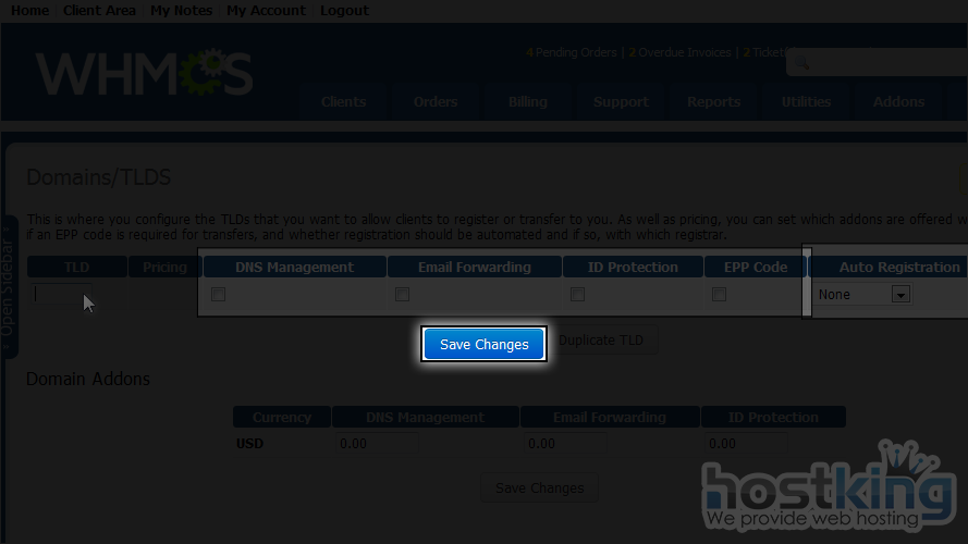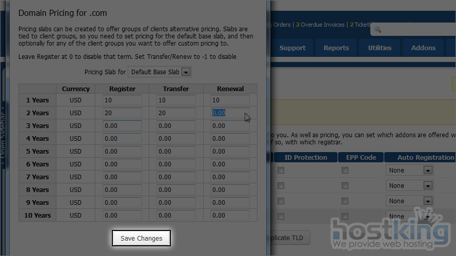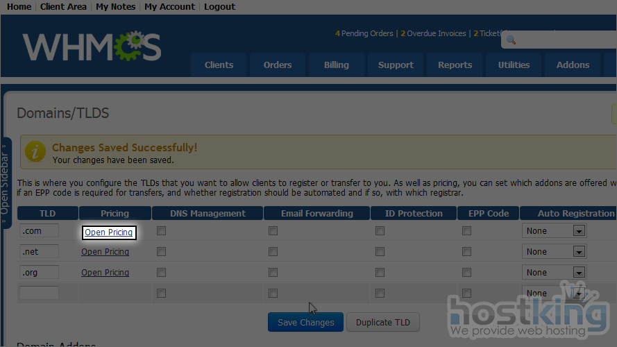 7) When all the TLDs have been added, click open pricing to set the pricing for each one.