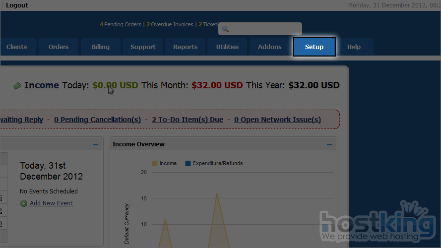 This tutorial assumes you've already logged in to your WHMCS admin panel.