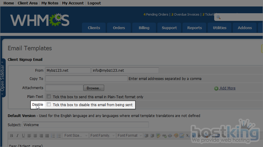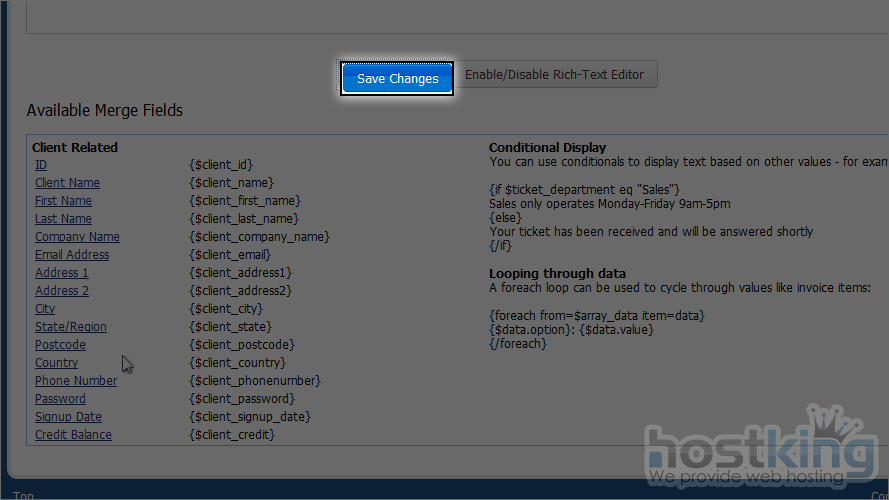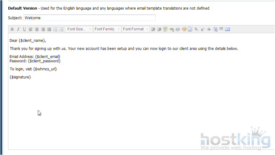 You can also use these variables, like {$client_name}. Which will display actual client name in each email sent to the clients.