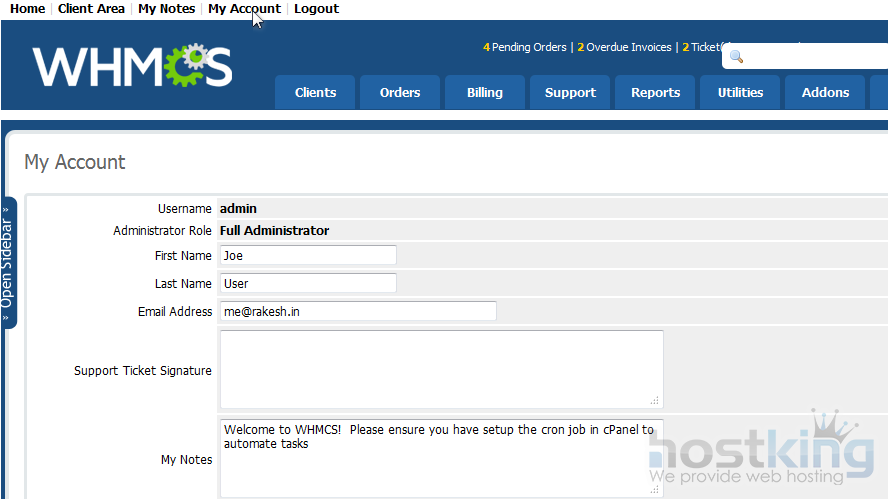 That's it! You now know how to change your account settings in WHMCS.