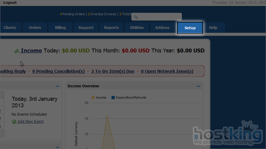 This tutorial assumes you've already logged in to your WHMCS admin panel.