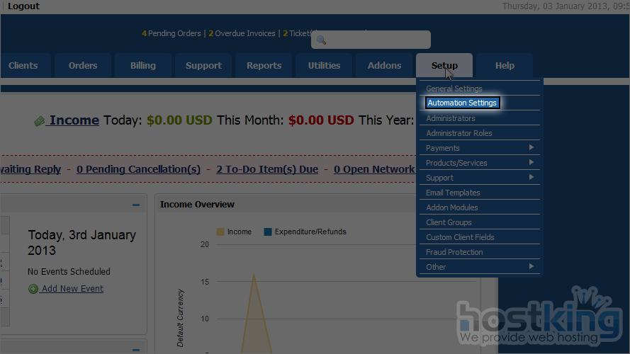 In order for the automation settings to work, you must have the WHMCS cron job set up. For details on how this is done, watch the tutorial earlier in this series.