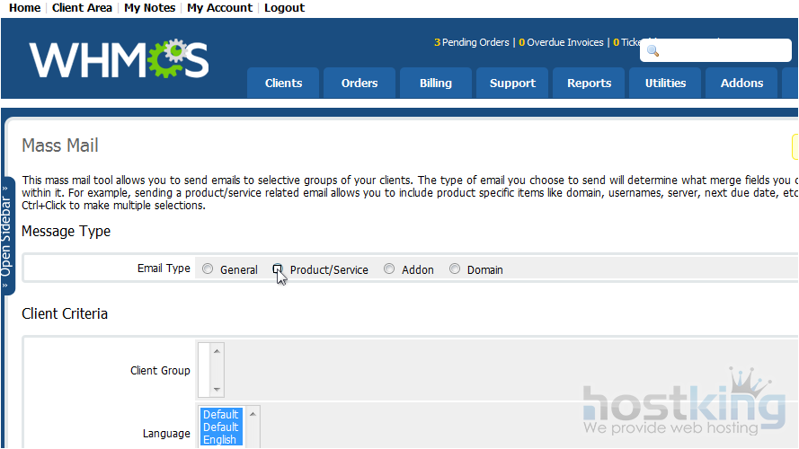 This tutorial assumes you've already logged in to your WHMCS admin panel.