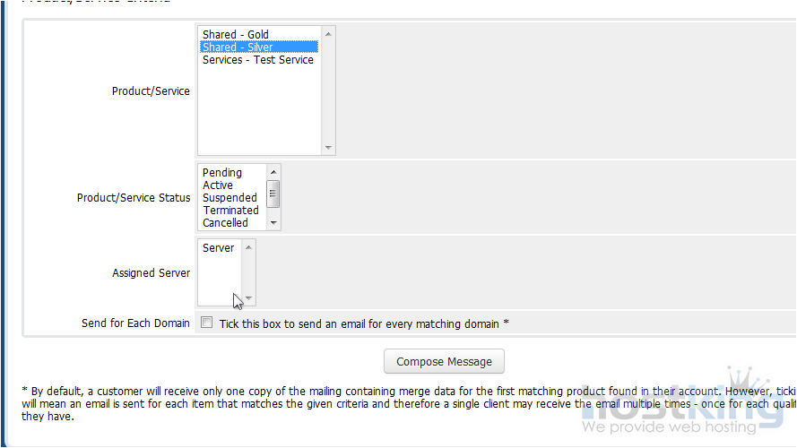 7) If you have multiple server setup and want to limit the email to a single server, select it from the list here.