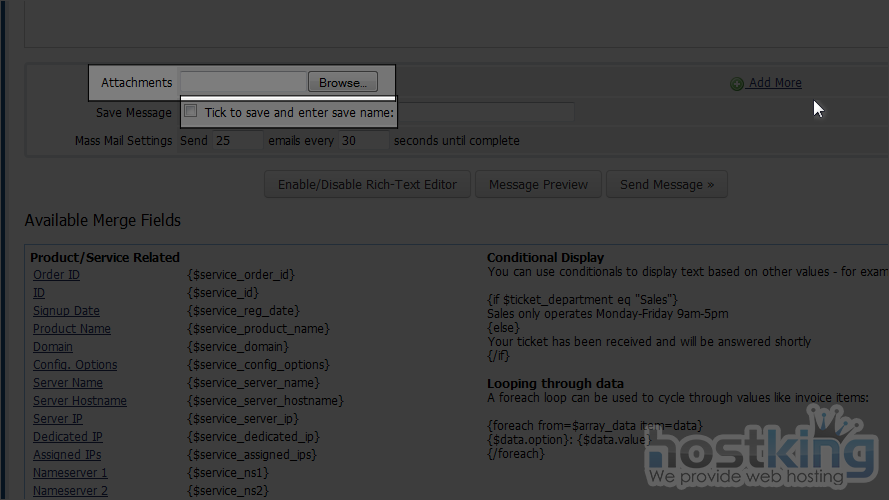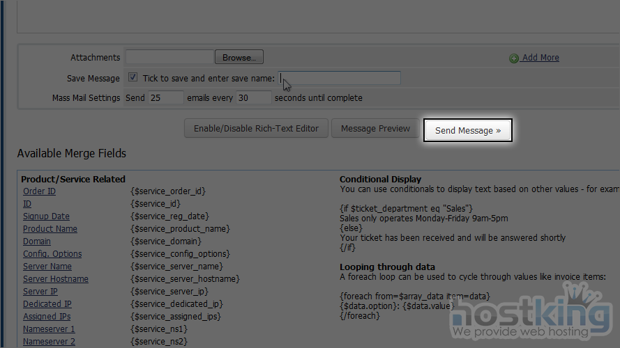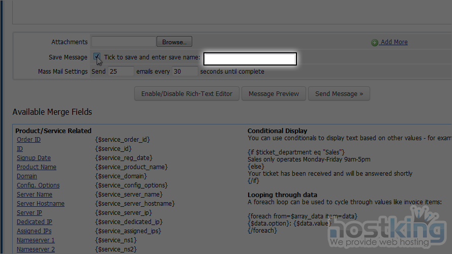 You can use variables listed here in email, which will fill data automatically related to each client. Like {$service_order_id} will display individual order id to each client.