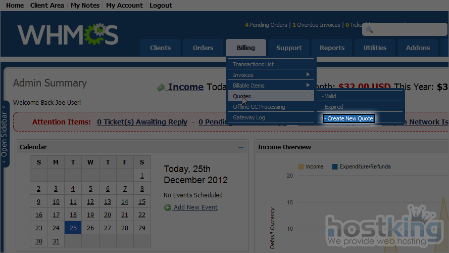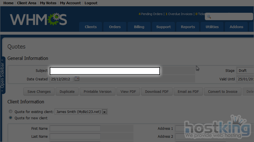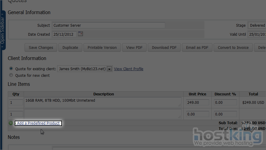 Often, a client will want a customized order instead of your standard offerings. With WHMCS, you can give them an initial quote that can later be converted to an invoice.