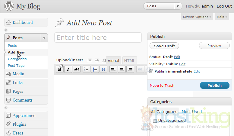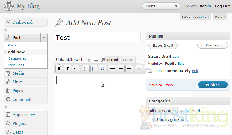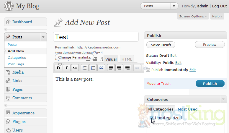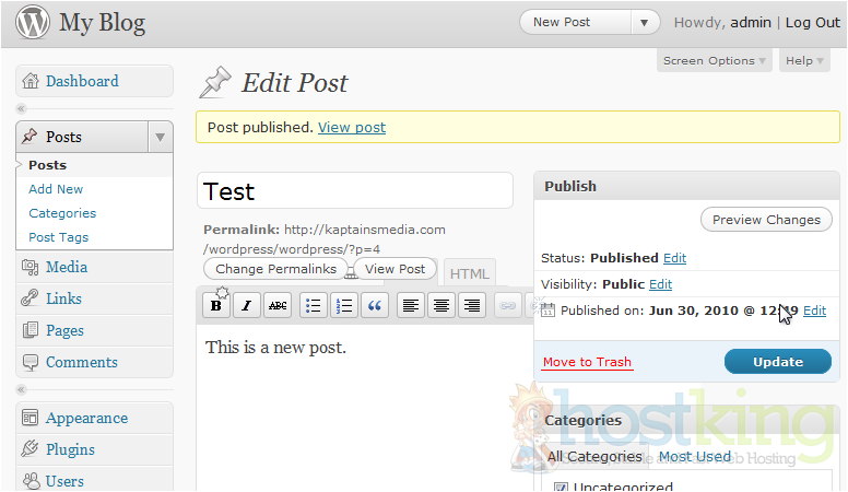 4) You can optionally assign this post to one or more categories. When you are finished, click Publish.