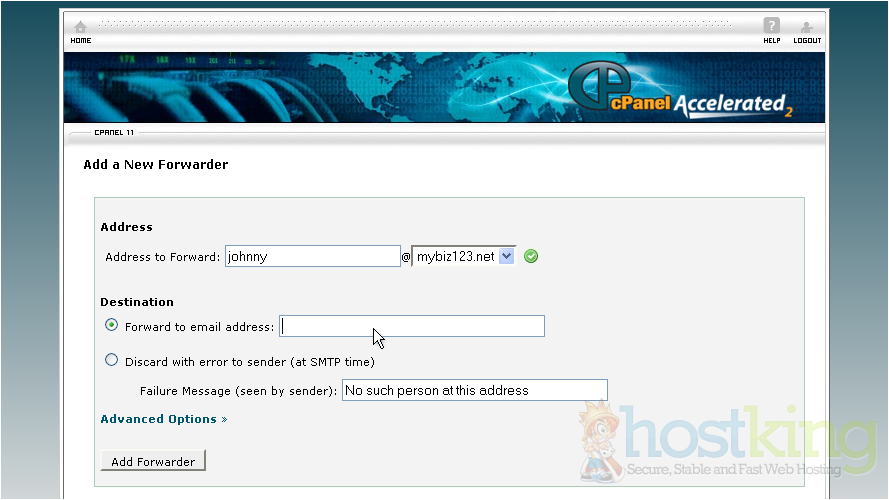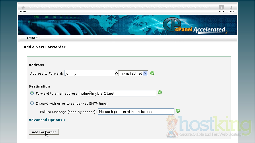 That's all there is to it! The email forwarder has been setup and will start working immediately