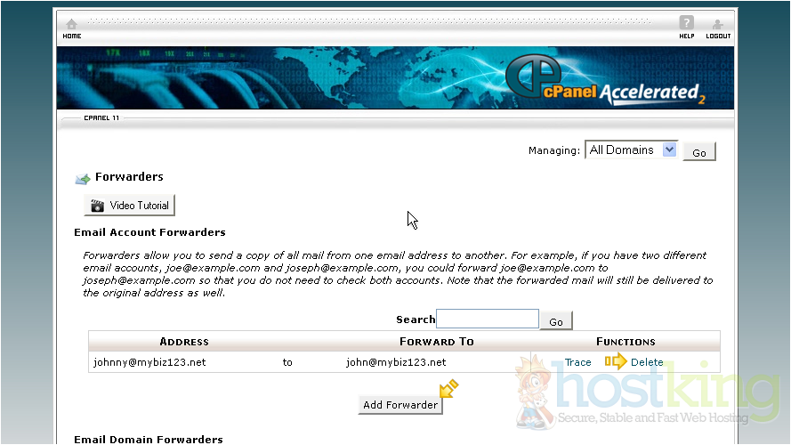 This is the end of the tutorial. You now know how to create email forwarders for automatically forwarding email from one address to another