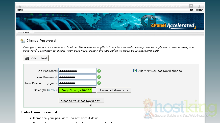 This is the end of the tutorial. You now know how to change your cPanel password.