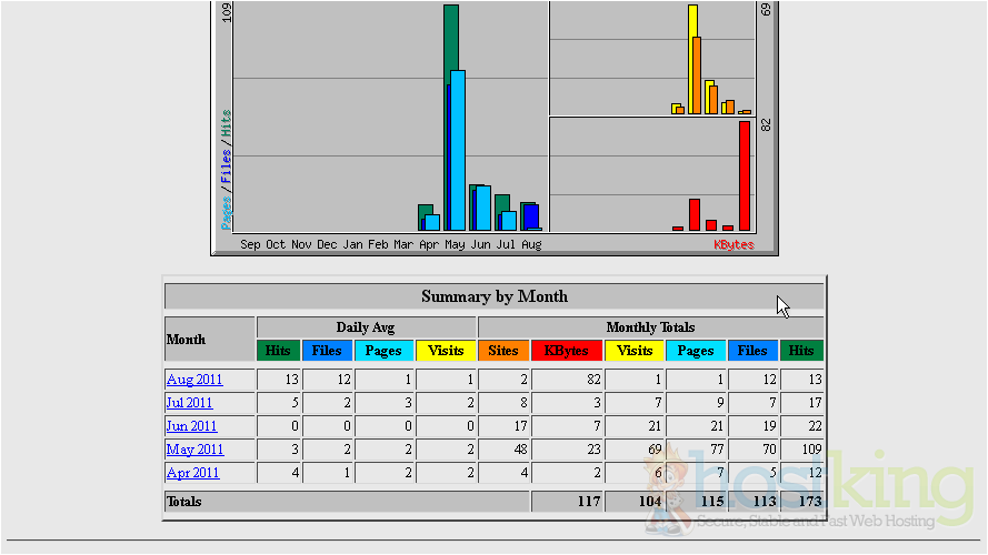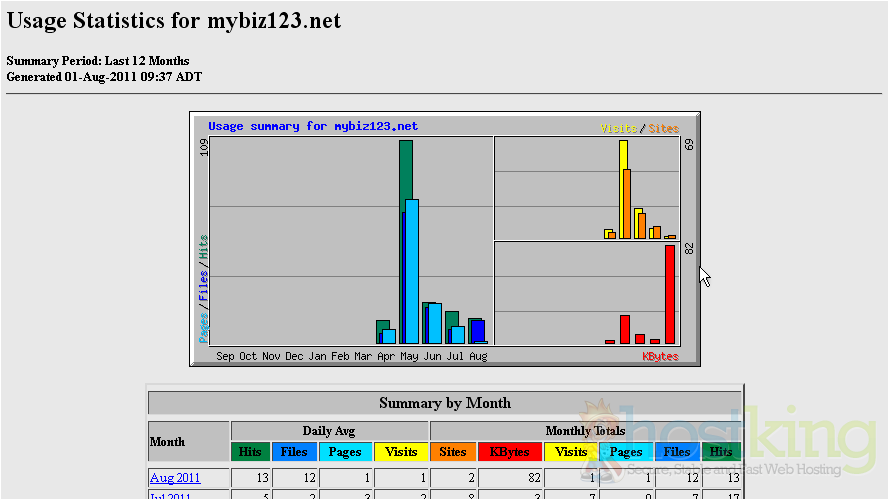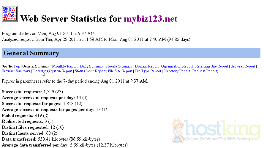 This is the main Webalizer page, from where you can access visitor stats broken down in several different ways