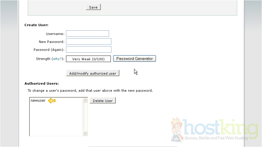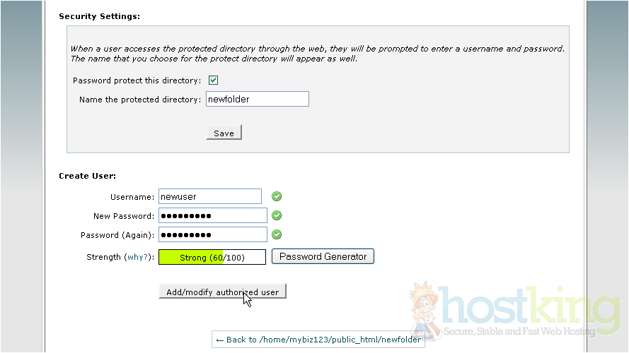 The protected directory now has one user who has access to it. Repeat this process for each additional user you want to grant access for