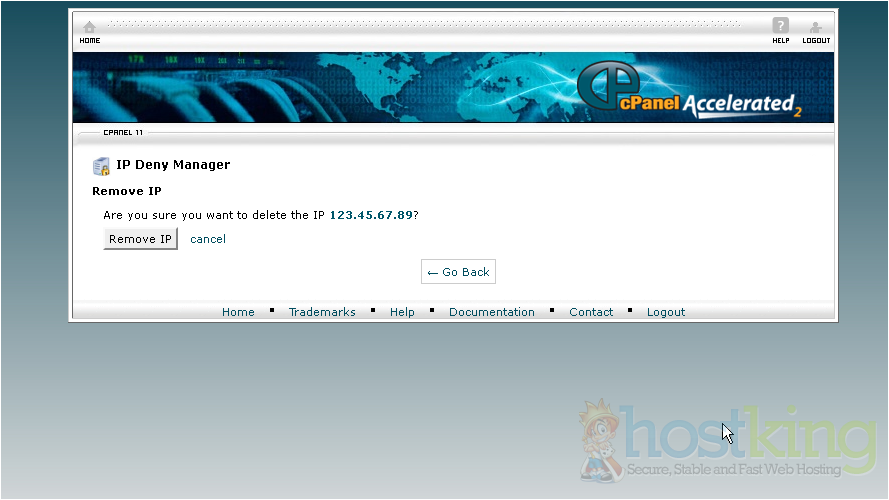That's it! The IP address has been removed from the blocked list