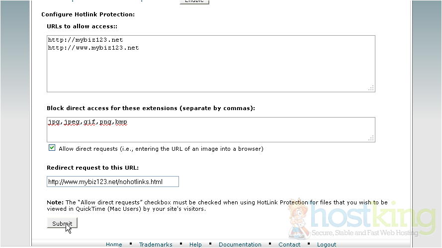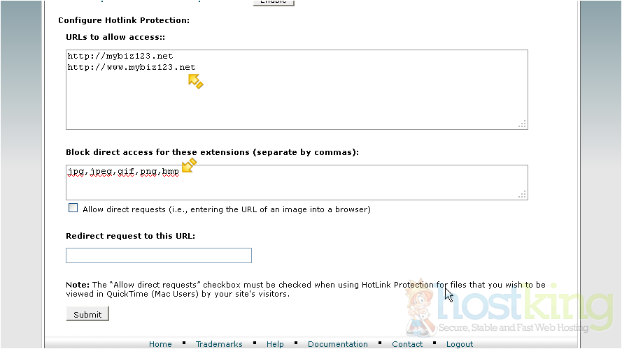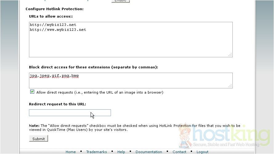 5) Then enter a URL you want to redirect to, for anyone who tries to hotlink to your files or images