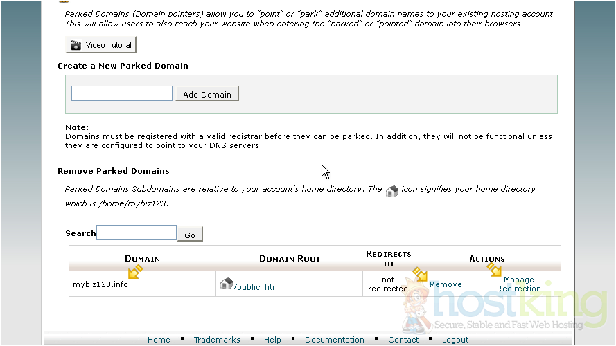 This is the end of the tutorial. You now know how to park another domain name on your account from cPanel