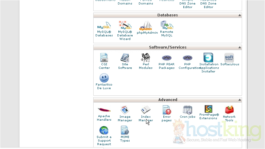 The Index Manager enables you to control how directories on your website are displayed.