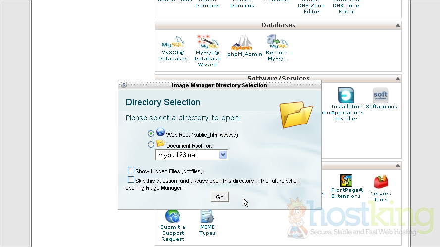 2) Choose the directory you want to start with, then click Go
