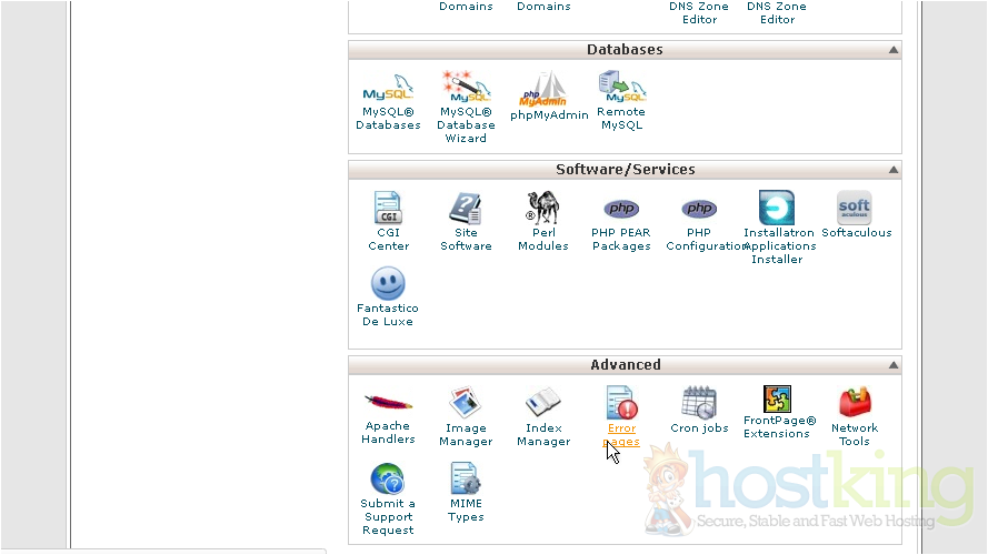 1) Click the Error Pages icon