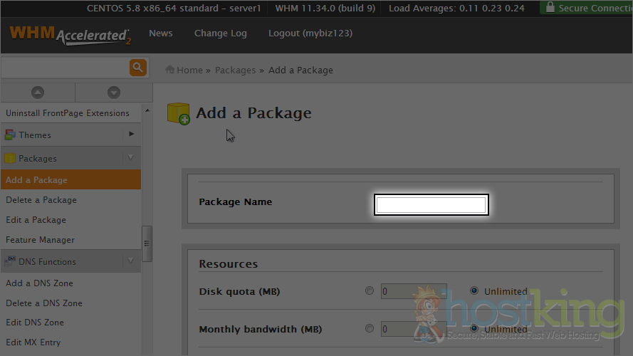 This is the end of the tutorial. Remember that you can create as many hosting packages as you wish, and that they greatly speed up the process of creating new hosting accounts.