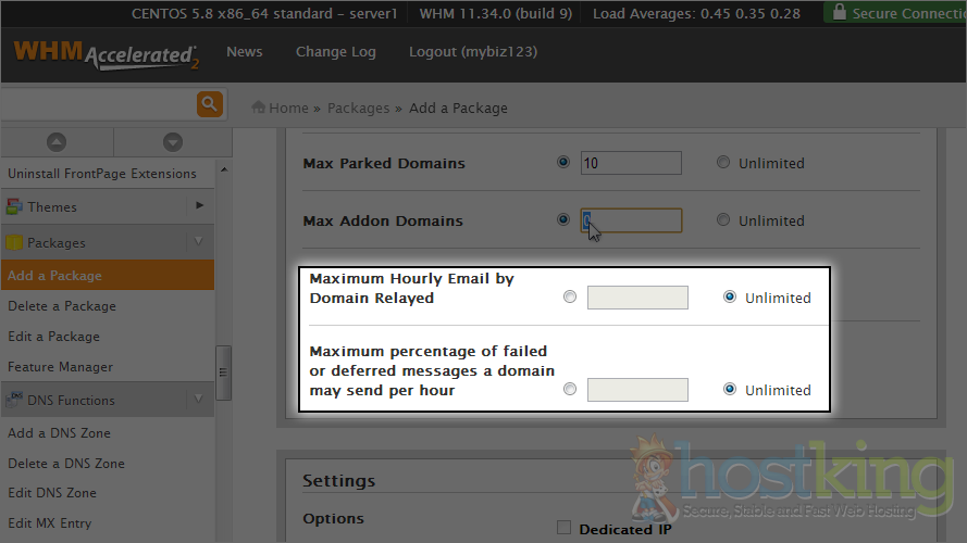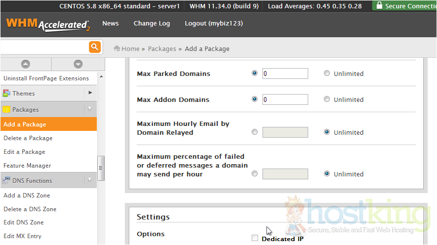 Here you can set some extra options. Generally you don't need to change any of this. You can select dedicated IP if you want to give one with the package.