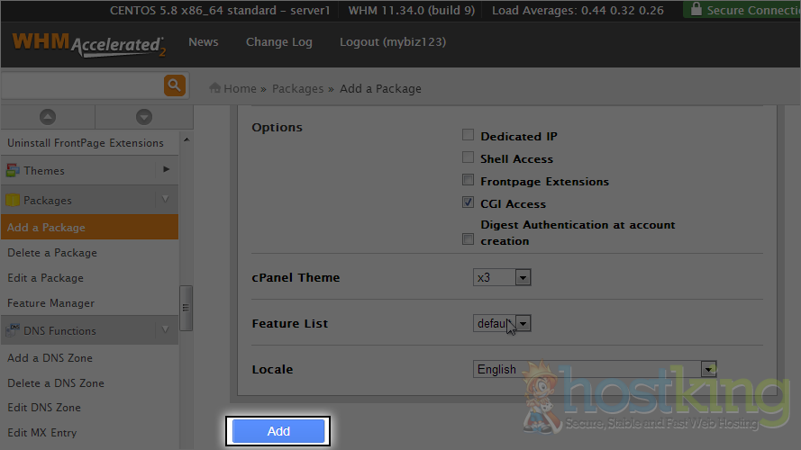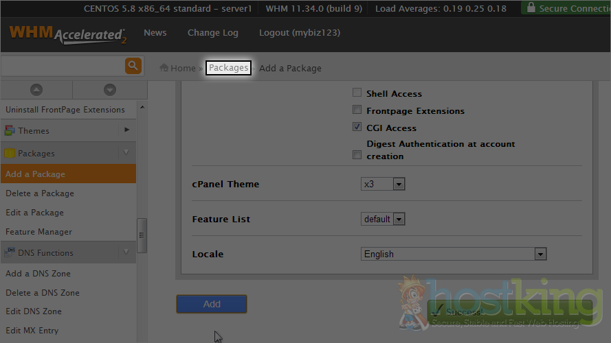 That's it! The new account package has been created, and can now be used to speed up the hosting account creation process.