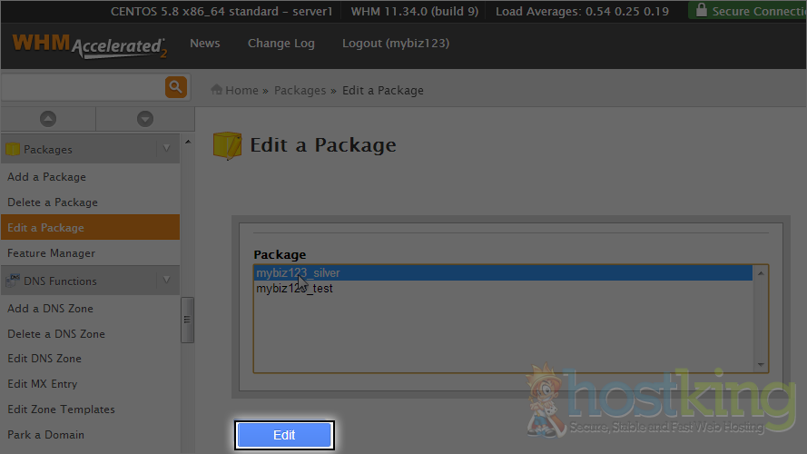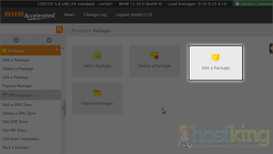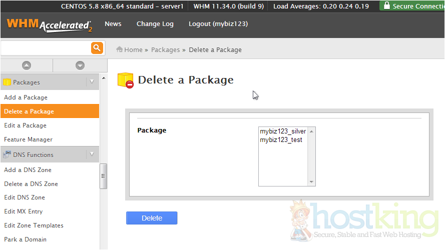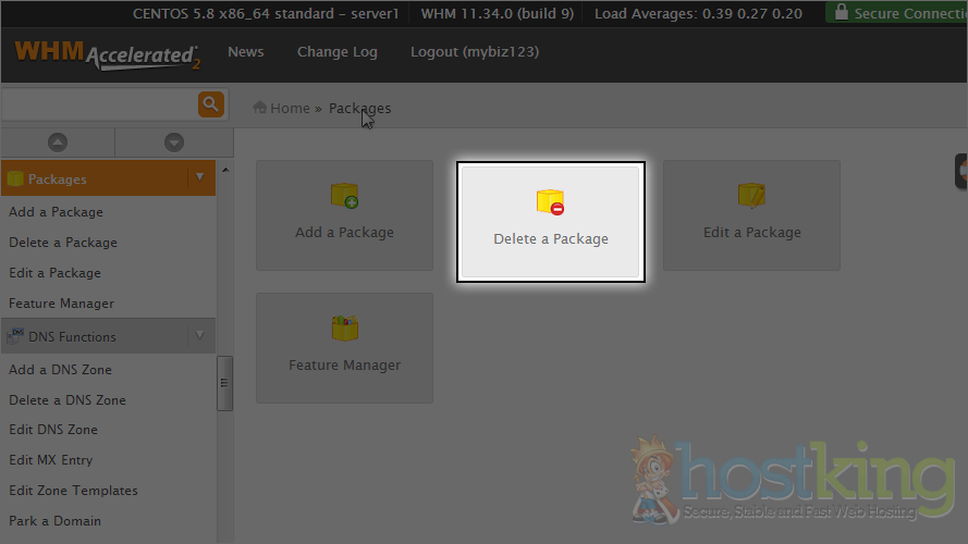 Note that deleting packages does not delete the actual hosting accounts that were created using the package. It only removes the package as an option when creating new accounts.