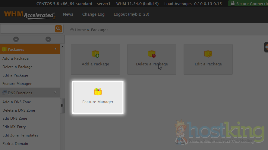 Now let's learn about the feature manager and how you can use it to help create hosting accounts.