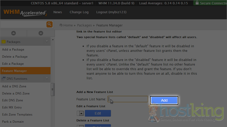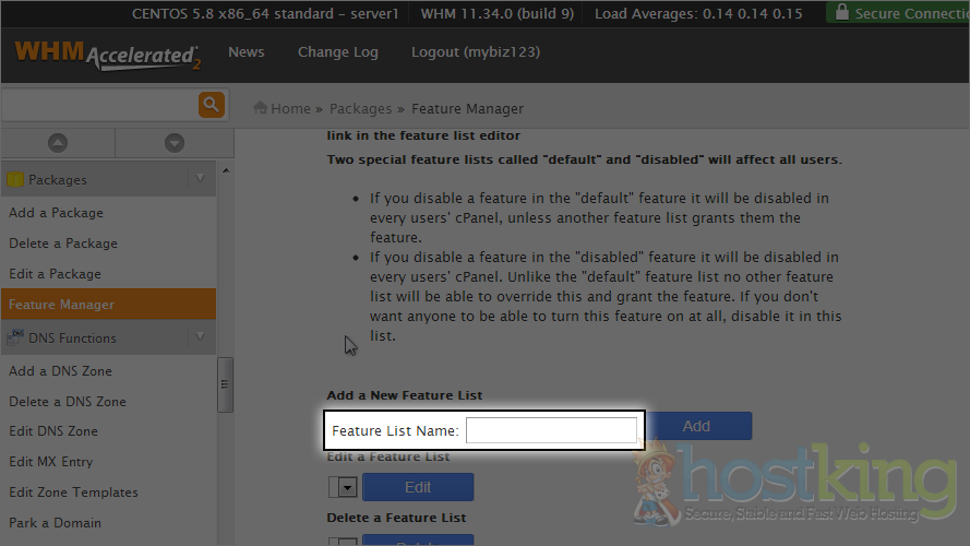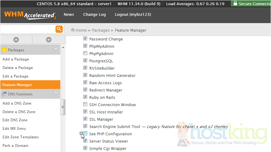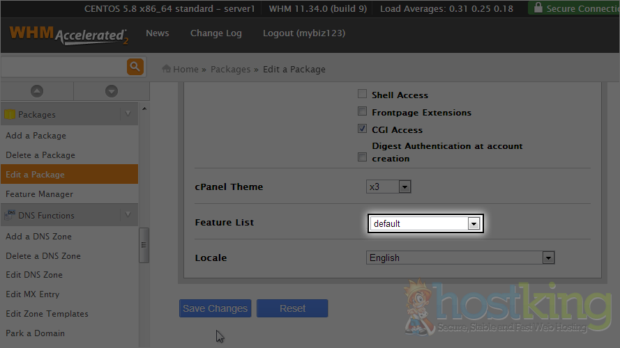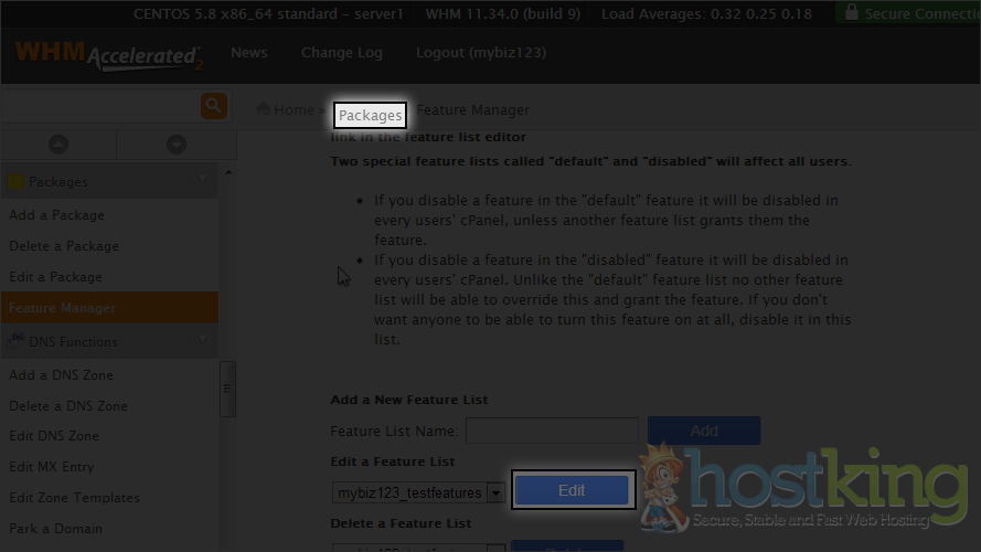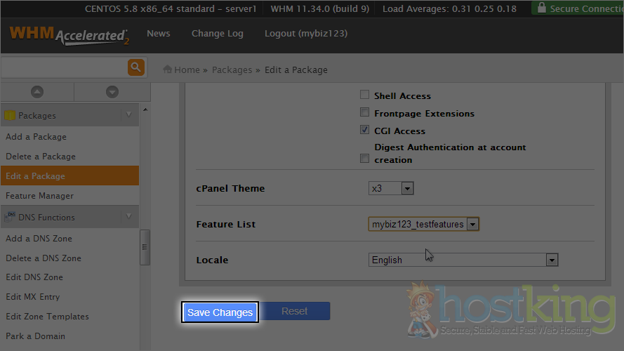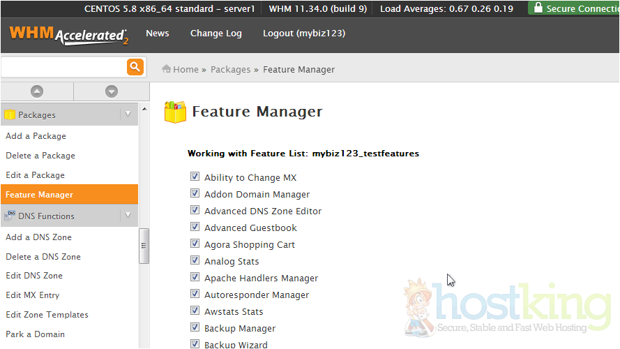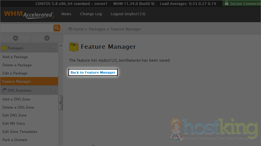 That's it! Now, any time we create a hosting account and assign it the silver package, the account will only have those features available to it that we assigned when we created the testfeature feature list.