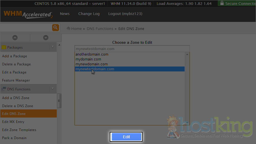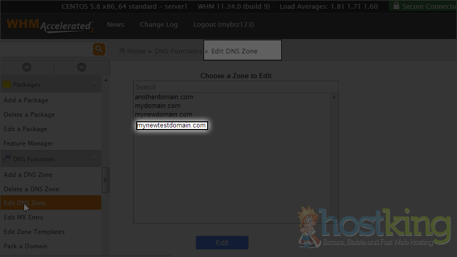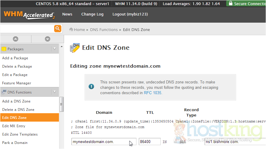 Keep in mind that you rarely (if ever) have to modify your DNS zones, since WHM does that for you automatically. You should only attempt to modify DNS zones if you know exactly what you are doing.